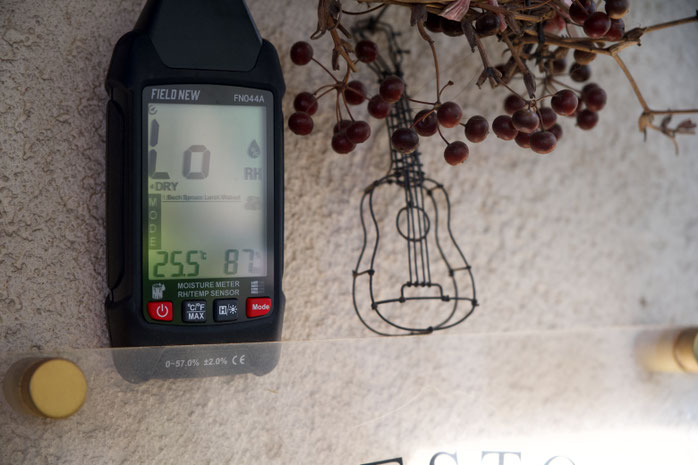 今朝の空模様です。久しぶりの青空に塗装できるかもという期待。しかし、明け方までぐずついていたので湿度は高めなのが肌感でわかる。いざ湿度計を見てみると
