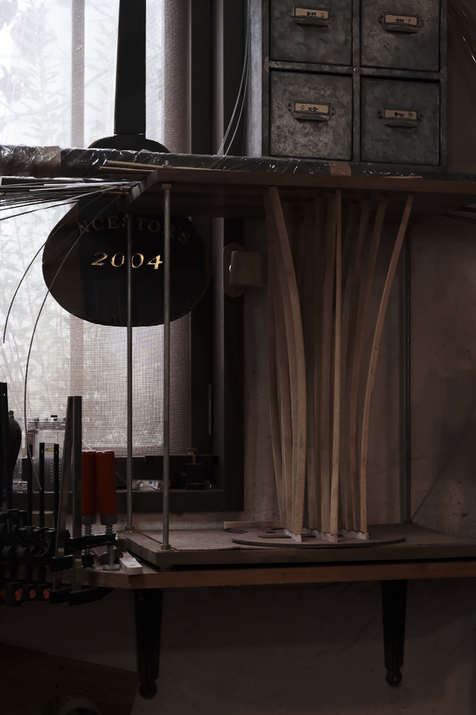塗装と同じで木工は木工で常に湿度を気にかけて進める必要があります。高湿度下の水分が膨張した状態で組み立てていくと乾燥する真冬に故障するリスクが高まります。うちの工房は狭小で大型木工機械を一つも置かない代わりに狭い分、湿度管理がとてもやりやすいメリットがあります。いつも最適な環境下で木工できるのはほんの有難い。