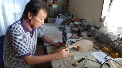 アリゾナのロベルト・ヴェン・スクールズ・オブ・ルシアリーで技術習得後、1995年現在の「夢弦堂」を東京都練馬区に立ち上げ「持つ誇り 弾く喜び」をモットーにユニークなアコースティックギター、ウクレレを制作しております。
